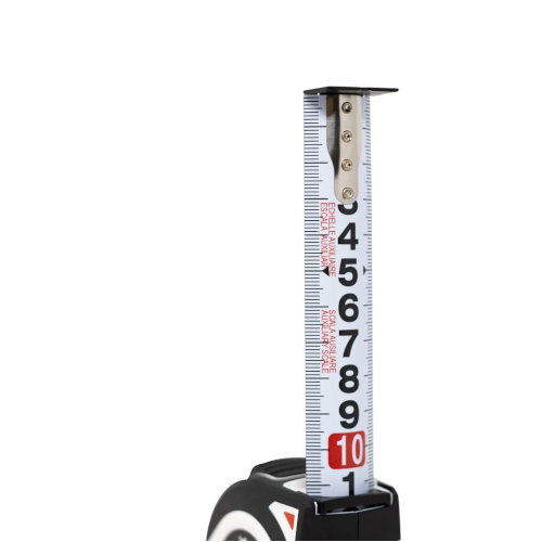 Fita métrica de alta visibilidade com estojo de design ergonómico, revestido de Elastollan antiderrapante. Fita impressa em ambos os lados, revestida de nylon. A face posterior na vertical para a medição de alturas. Botão de freio com acabamento antiderrapante. Equipado com alça de pulso de tecido e clipe de cintura. Ponteira blindada com 3 rebites para uma resistência e durabilidade aumentadas.