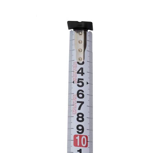 Fita métrica de alta visibilidade com estojo de design ergonómico, revestido de Elastollan antiderrapante. Fita impressa em ambos os lados, revestida de nylon. A face posterior na vertical para a medição de alturas. Botão de freio com acabamento antiderrapante. Equipado com alça de pulso de tecido e clipe de cintura. Ponteira blindada com 3 rebites para uma resistência e durabilidade aumentadas.