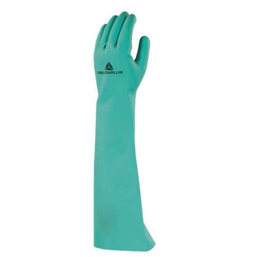 Luva química com proteção do antebraço, combinando conforto e longevidade, ideal para a indústria alimentar